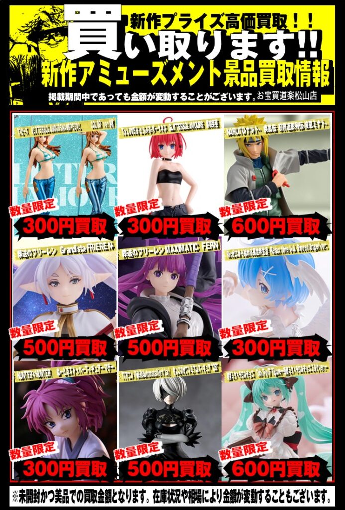 お宝買道楽松山店では新作フィギュアを集めております💕”…
