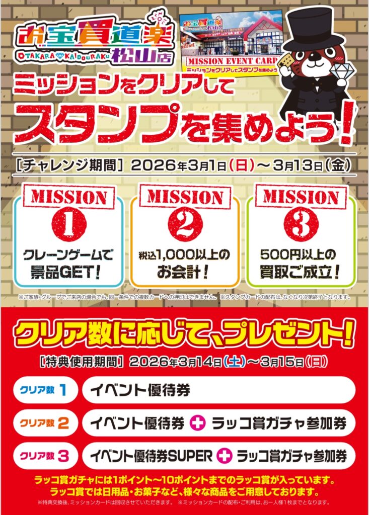3/1(日)〜3/13(金)の期間限定でミッションイベントを開催! ミッション…