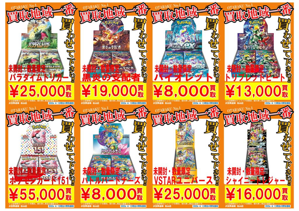 シュリンク付き美品に限り、個数限定にて以下の価格にて買取させて頂き…