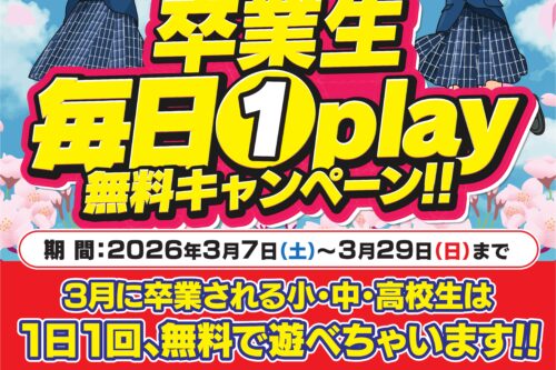今年3月に卒業される小学生、中学生、高校生に1play無料券配布中‼️