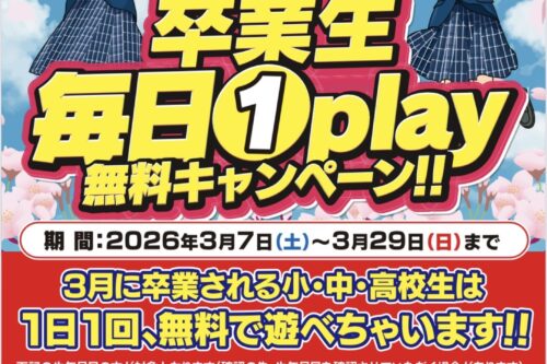 今年卒業される小中高校生が1日1回1PLAY無料で遊べるキャンペーンを開催!