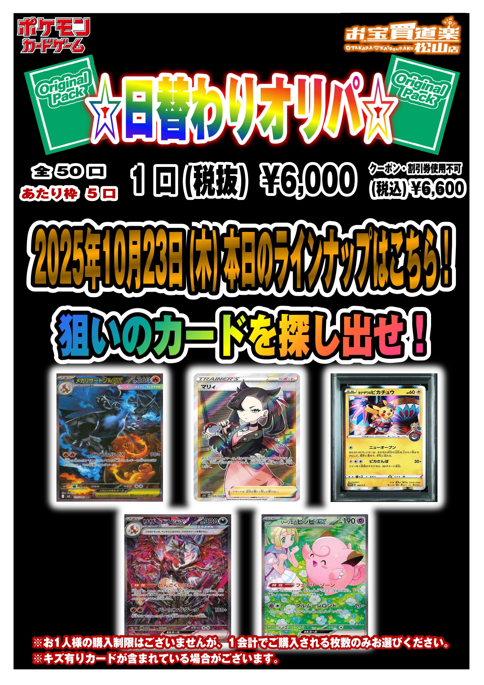 1日限定50口のみの日替わりオリパ!