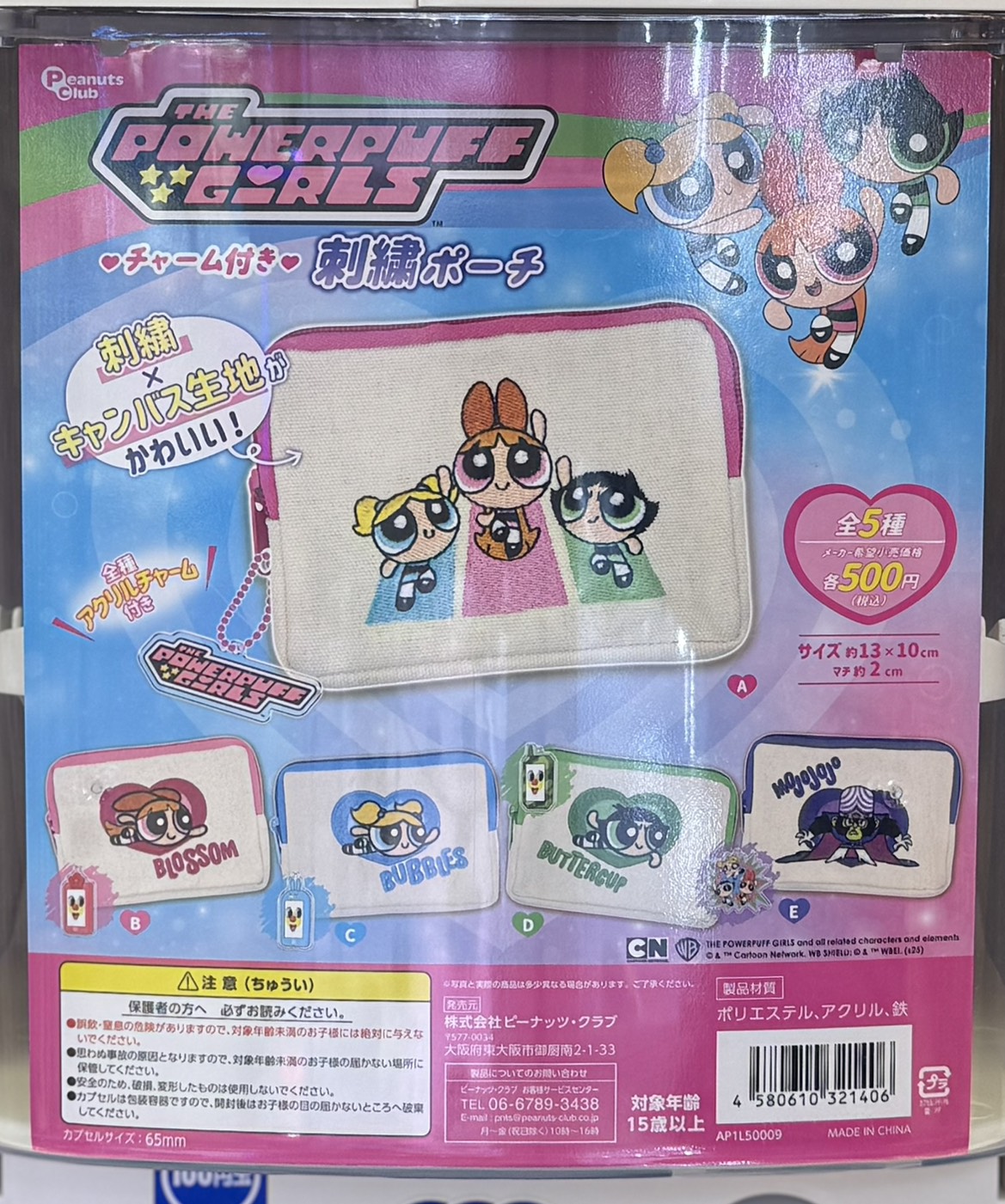 パワーパフガールズ チャーム付き刺繍ポーチ