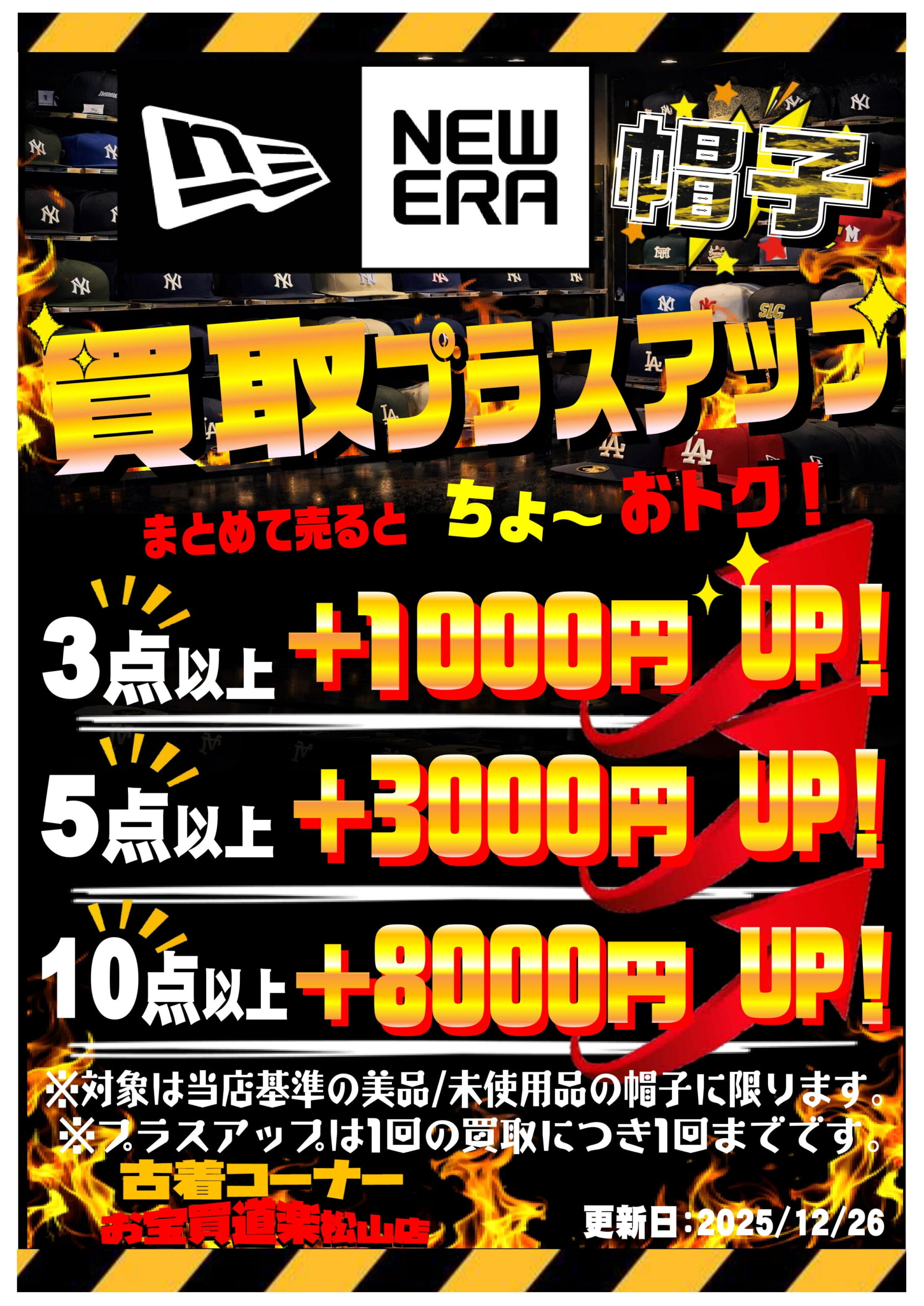 只今、当店では NEW ERA “キャップ限定” の買取プラスアップキャンペーンを実施しております><